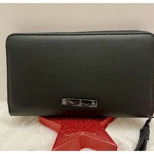 BETSEY JOHNSON Black Faux Leather Studded Skull and Cross Bones Wristlet Wallet