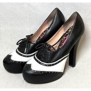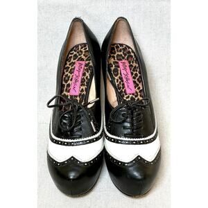 BETSEY JOHNSON Black and White Napoleon Oxford Wingtip Pump Women's Size 6.5
