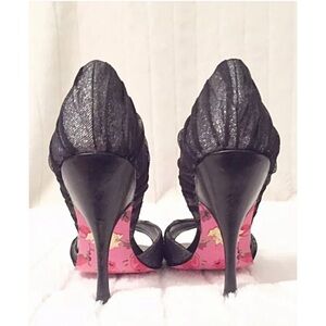 BETSEY JOHNSON Blk Glitter & Tulle Overlay Sandals