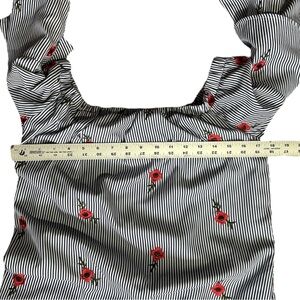 Playful, Embroidered, Red Flowers, Pinstripe, Short, Ruffle Sleeves