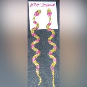 BETSEY JOHNSON Crystal Encrusted Pink & Yellow-Green Snake Dangle Earrings NWT