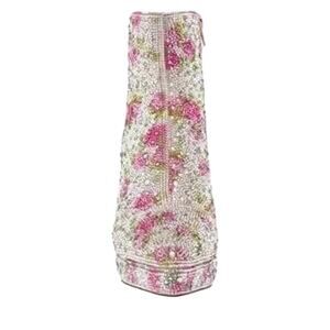 BETSEY JOHNSON DELLA Pink Rhinestone Floral Booties Size 8 Bling Sparkle NEW