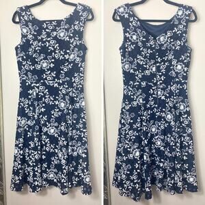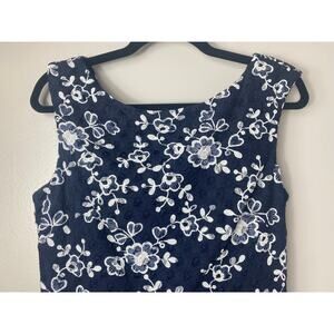 BETSEY JOHNSON LACE EMBROIDERED FLORAL EYELET NAVY BLUE COCKTAIL TEA DRESS 6
