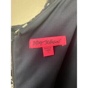 BETSEY JOHNSON DRESS 6 LACE EMBROIDERED FLORAL EYELET NAVY BLUE IVORY COCKTAIL