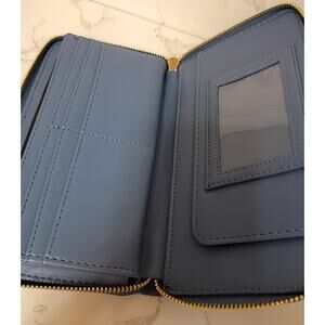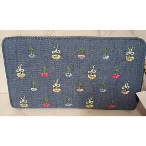 BETSEY JOHNSON Denim Floral Embroidered Zip Around Wristlet - NEW