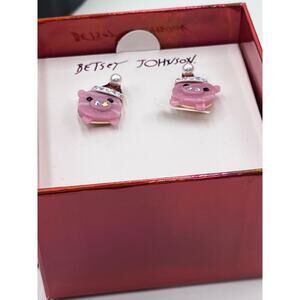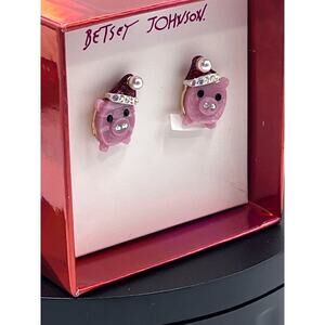 BETSEY JOHNSON Festive Pink Piggy Pearl Santa Hat Pave Stud Earrings NWT