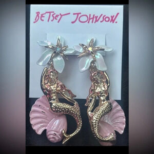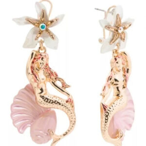 BETSEY JOHNSON Gold-Tone Flower Starfish Mermaid & Seashell Drop Earrings NEW NWT