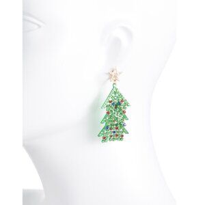 BETSEY JOHNSON Green Crystal Christmas Tree Drop Earrings