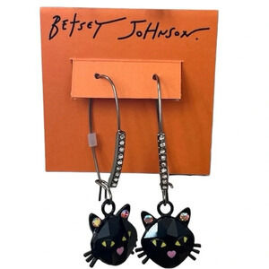 BETSEY JOHNSON Halloween Angular Cut Black Cat with Crystals Dangle Earrings NEW NWT