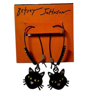 BETSEY JOHNSON Halloween Angular Cut Black Cat with Crystals Dangle Earrings NWT