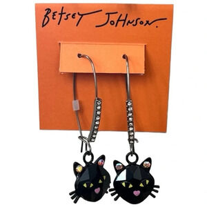 BETSEY JOHNSON Halloween Angular Cut Black Cat with Crystals Dangle Earrings NWT