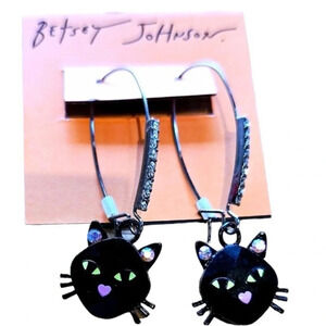 BETSEY JOHNSON Halloween Angular Cut Black Cat with Crystals Dangle Earrings NEW NWT