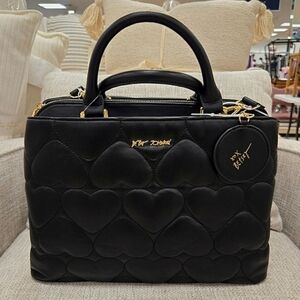🔹️BETSEY JOHNSON 🔹️Large Quilted Puffy Hearts XODelta Satchel Bag Black