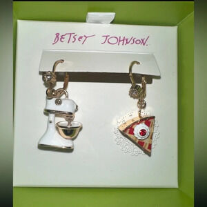 BETSEY JOHNSON Mismatched Baking Mixer & Cherry Pie Dangle Earrings in Box NWT