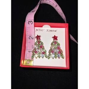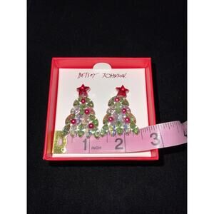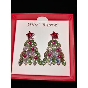 BETSEY JOHNSON NEW Christmas Tree Drop Dangle Earrings Colorful Crystals Holiday.