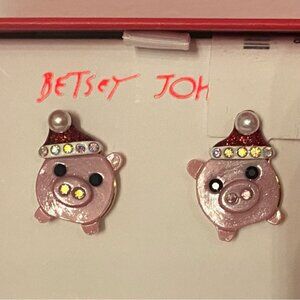 BETSEY JOHNSON NEW EARRINGS GIFT SET BOX 2 PAIR RED CANDY CANE BLING PIGS PINK