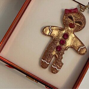 BETSEY JOHNSON WOMENS NEW JEWELRY EARRINGS GINGERBREAD PAIR MAN & LADY BITTEN DANGLE DROP BROWN LUCITE GOLD LEVERBACK RED WHITE BLACK DETAIL NEW IN BOX NIB NEW WITH TAG NWT