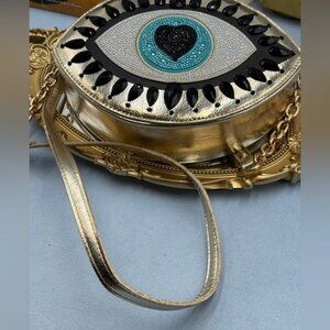 BETSEY JOHNSON Eyes Have It Gold Evil Eye & Crystal Bead Crossbody Bag