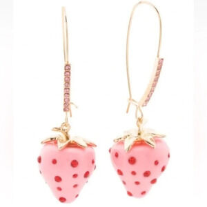 BETSEY JOHNSON Pink Enamel & Red Crystals Strawberry Dangle Drop Earrings NEW NWT