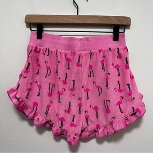 BETSEY JOHNSON Pink Flamingo Soft Terry Cloth Ruffle Hem Shorts Size Small