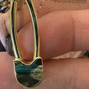This is a Betsey Johnson diaper bag. Pink and gray. EXCELLENT condition. Pockets on the outside and inside. Zipper closure. Has a metal diaper pin as a zipper pull. Super cute. Handles are in excellent condition 16" x 13" x 6". Absolutely clean.