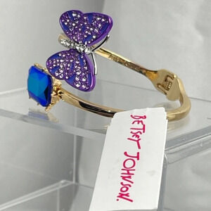 BETSEY JOHNSON Purple Glitter Butterfly & Blue-Green Crystal Hinge Bracelet NWT