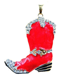 BETSEY JOHNSON RED ALLOY AND ENAMAL BOOT WITH RHINESTONES NECKLACE