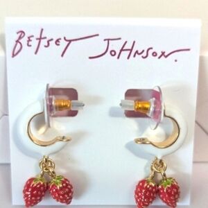 ✨️🍓 BETSEY JOHNSON Red Enamel Strawberry Huggie Hoop Earrings ✨️🍓
