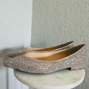 BETSEY JOHNSON Rhinestone Crystal Pavé Pointed Toe Flat, SPARKLE, Size 8.5, NWOT