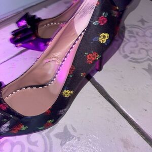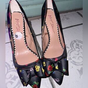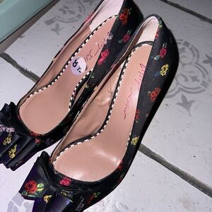 BETSEY JOHNSON SATIN BLACK WITH FLOWERS
