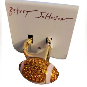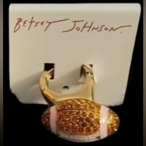 BETSEY JOHNSON SEC NFL Sports Glittering Shimmery Football Stretch Ring NEW NWT