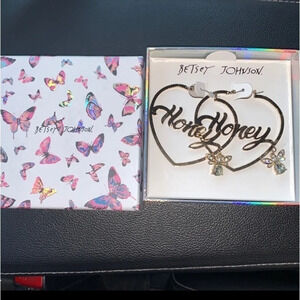 BETSEY JOHNSON SET Gold HONEY + Bee Heart-Shaped Hoop Earrings & Necklace NWT