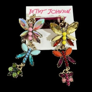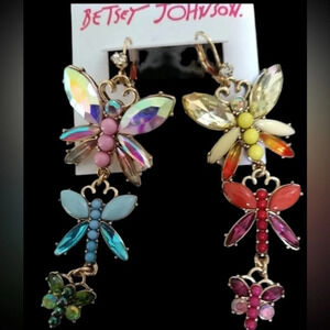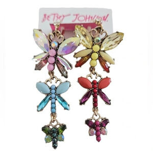 BETSEY JOHNSON SET Love Fest Butterfly Dragonfly Earrings & Necklace NEW NWT