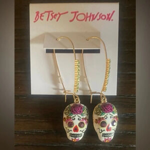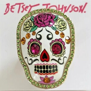 BETSEY JOHNSON SET Sugar Skull Day of the Dead Earrings Necklace Ring NEW NWT