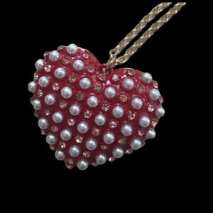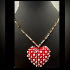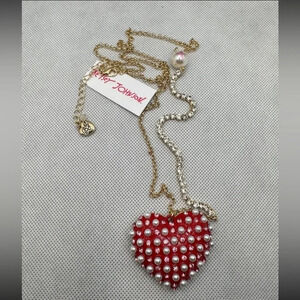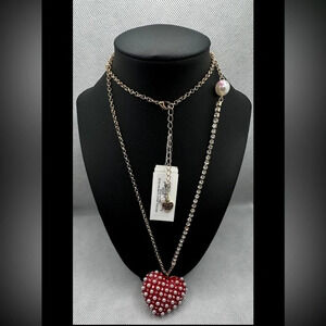 BETSEY JOHNSON SET Valentine Faux Pearl & Crystals Heart Earrings & Necklace NEW NWT