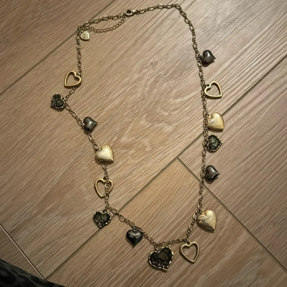 BETSEY JOHNSON SNAKESKIN HEARTS AND LOCKET NECKLACE