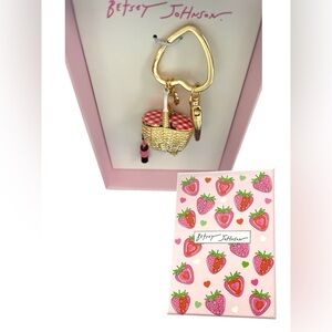 BETSEY JOHNSON STRAWBERRY PICNIC BASKET BAGCHARM KEYCHAIN