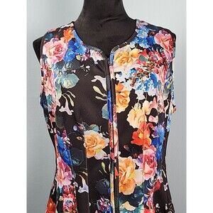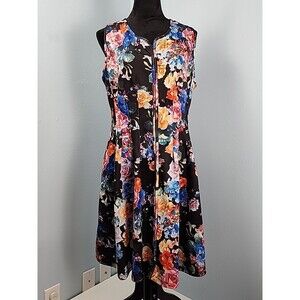 BETSEY JOHNSON Scuba Dress Fit & Flare Front Zip Sleeveless Floral Size 14