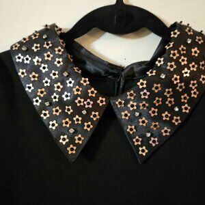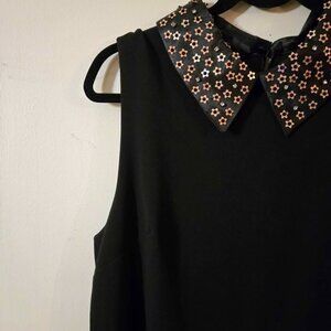 BETSEY JOHNSON Size 12 Black Shift Dress, Sleeveless, Rhinestone + Flower Embellished Collar