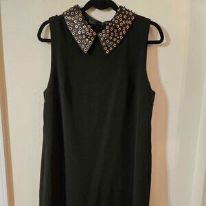 BETSEY JOHNSON Size 12 Black Sleeveless Dress with Embellished Collar
