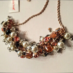 BETSEY JOHNSON Statement Gold-Tone Necklace Crystals Faux Pearls Baubles NWT