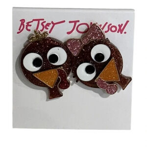 BETSEY JOHNSON Thanksgiving Holiday Glittering Male Female Turkey Earrings RETIRED NEW NWT