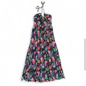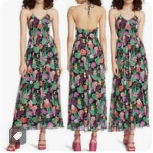 BETSEY JOHNSON Women's Paulina Halter Toucans & Leopards Mesh Maxi Dress Size XL