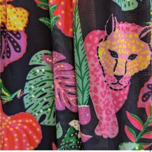 BETSEY JOHNSON Toucans & Leopards Fine Mesh Maxi Halter Dress fairy