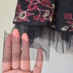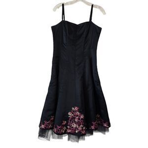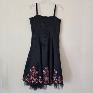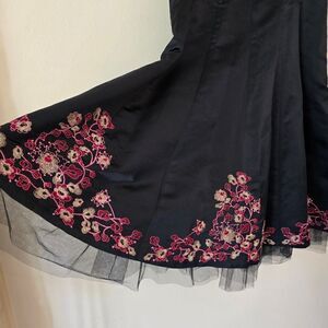 BETSEY JOHNSON Vintage A line Silk Floral Embroidered Dress size 10 tulle