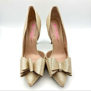 BETSEY JOHNSON WOMEN'S LANDYN HEELED SANDAL,GOLD SIZE 10