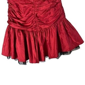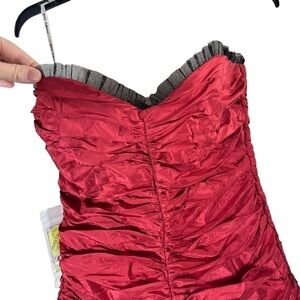 BETSEY JOHNSON Vintage Y2K Dead Stock Silk Taffeta Party Dress. Absolutely amazing dress from the year 2009 - not technically vintage yet. Fitted ruched silk taffeta bodice with tulle trim and tutu style flared skirt. Candle apple red color. Optional and adjustable halter strap. Fully lined. Hidden side zip. Betsey Johnson is known to run on the smaller side - see measurements.