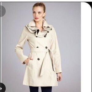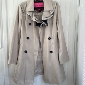 BETSEY JOHNSON women’s beige ruffle collar double breasted trench coat no belt S