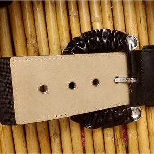 BETSEY JOHNSON Black Stretch Belt Scrunch Frilly Buckle Silver Hardware M/L