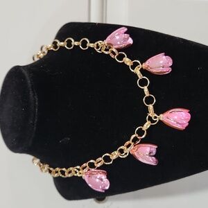 🔹️BETSEY JOHNSON🔹️Pink Garden Glam Tulip Charm Chain 16" Necklace